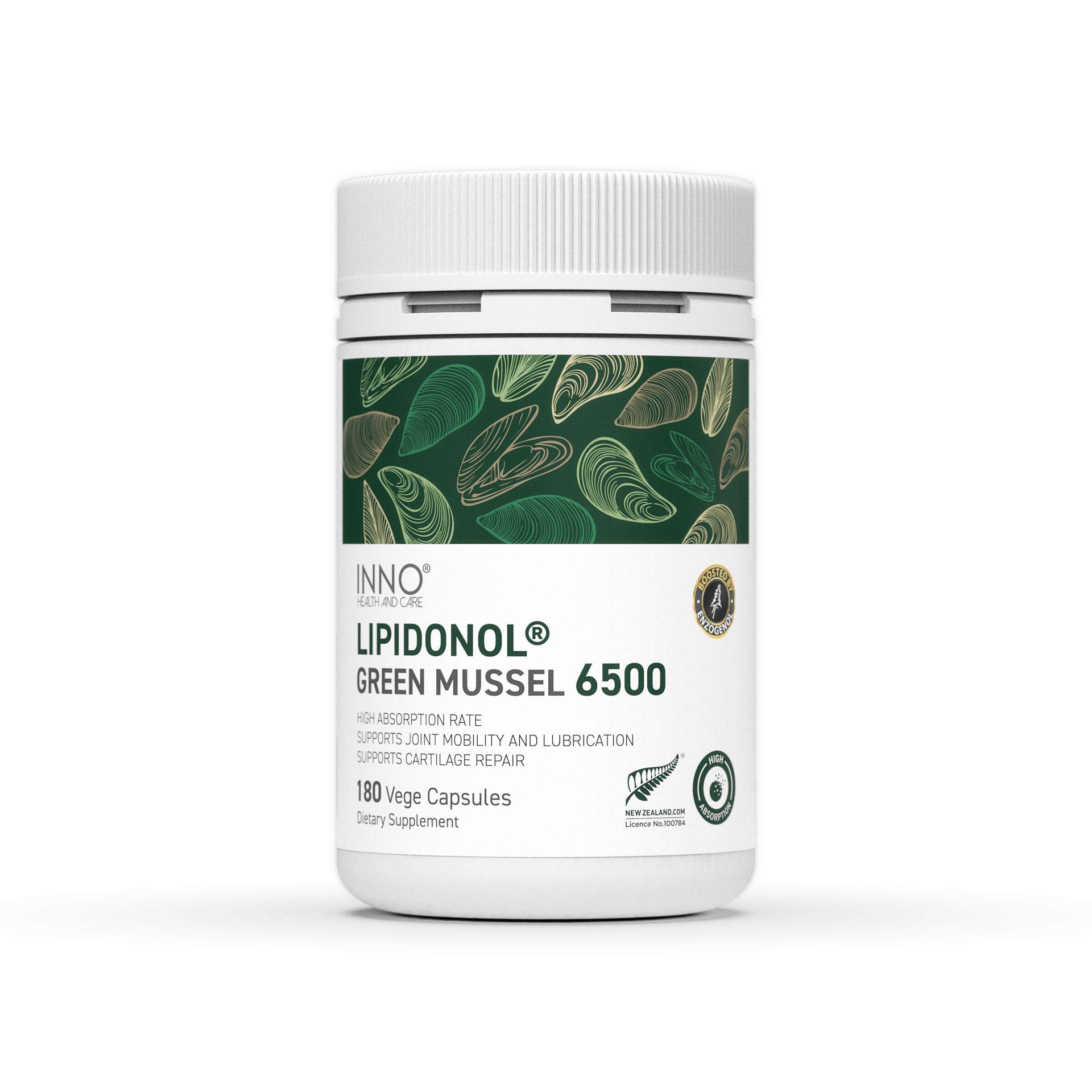 INNO Lipidonol Green Mussel 6500 is a daily joint health supplement formulated with New Zealand green-lipped mussel extract to support joint comfort, flexibility, and mobility. Designed for long-term, everyday joint care.