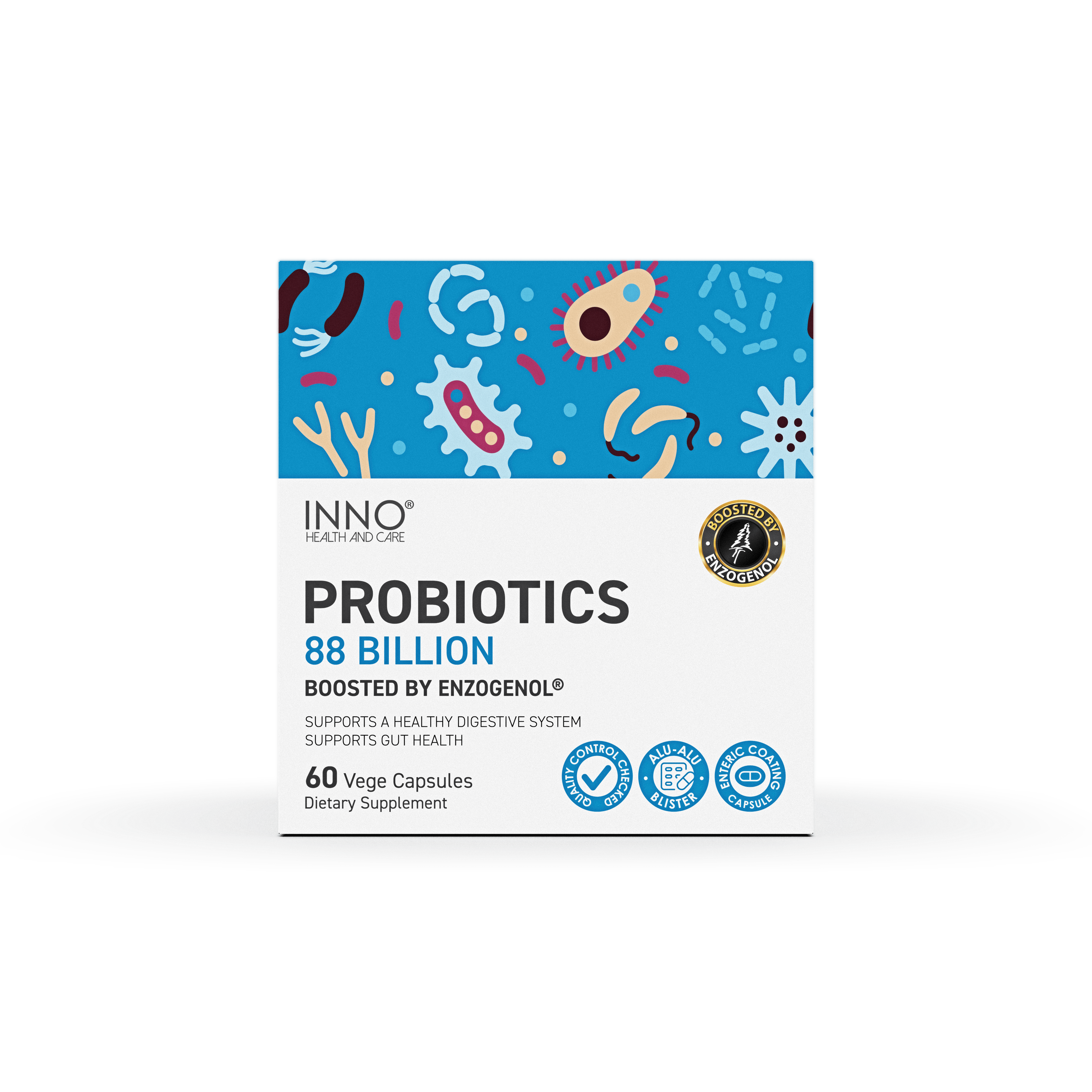INNO Enzo Probiotics 88 Billion is a high-strength probiotic formula designed to support gut microbiota balance, digestive comfort, and immune health. Delivering 88 billion CFU per daily serving, it provides advanced support for those seeking intensive probiotic care.