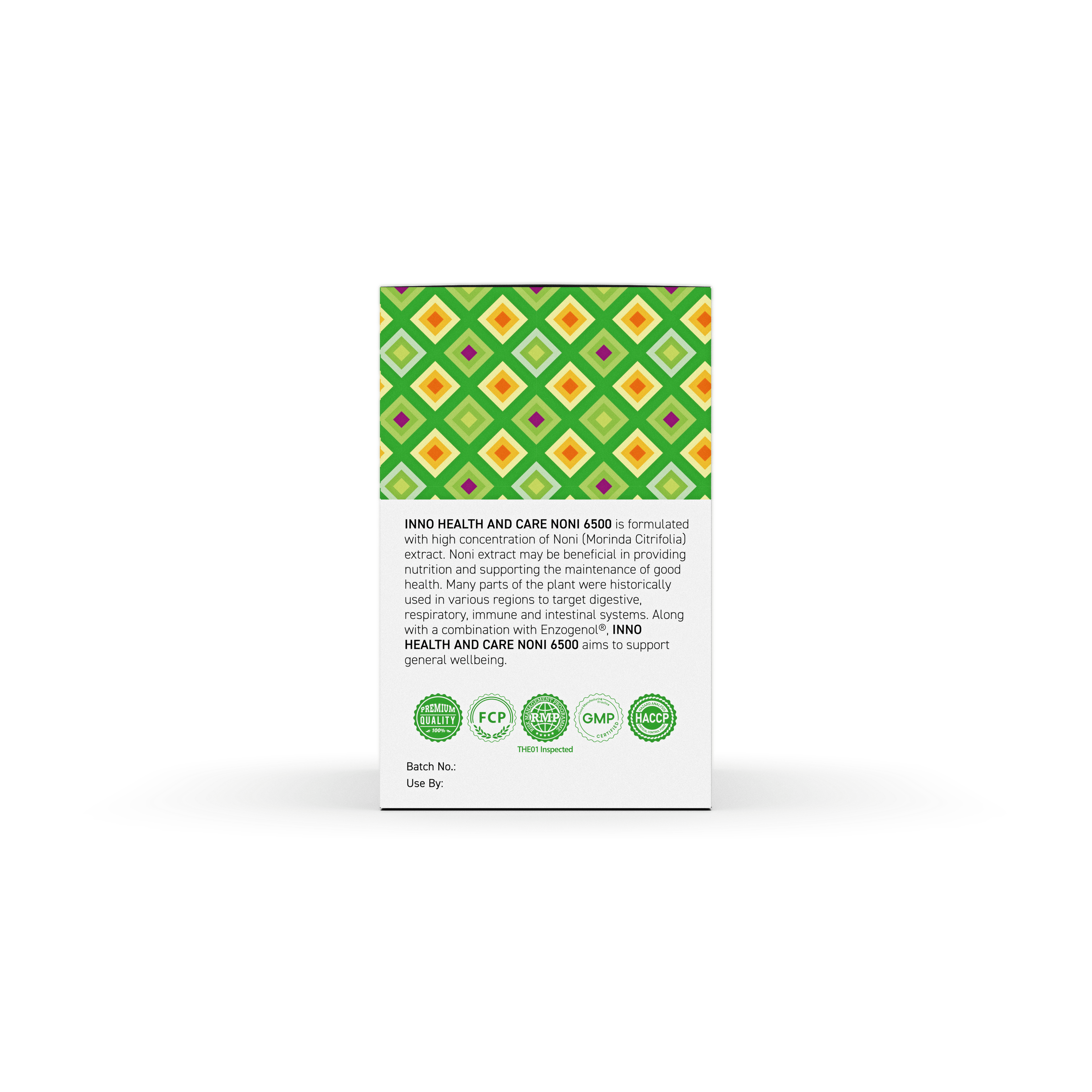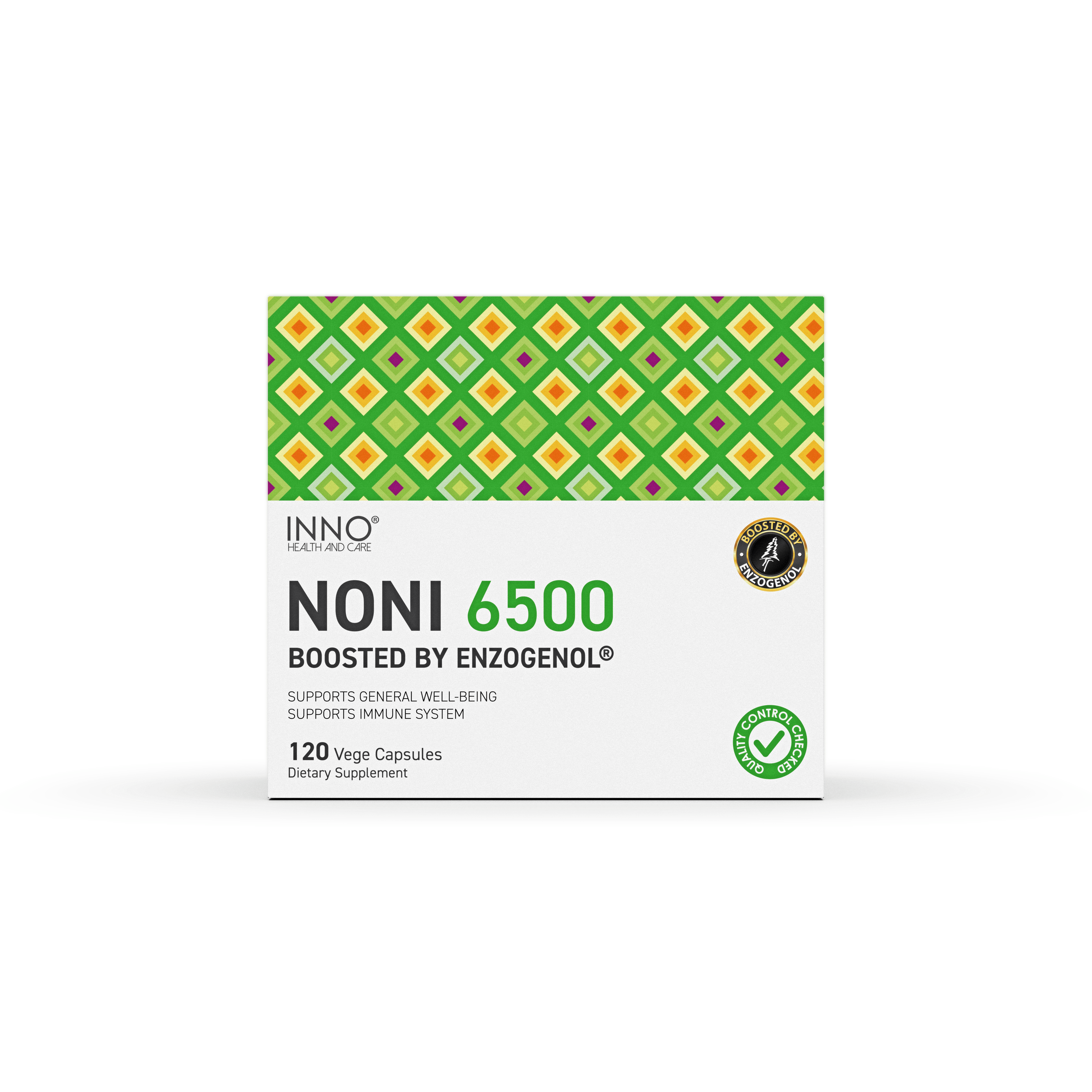 INNO Noni 6500 is a botanical wellness supplement formulated with concentrated noni extract to support immune function, antioxidant defence, and overall vitality as part of a daily health routine.