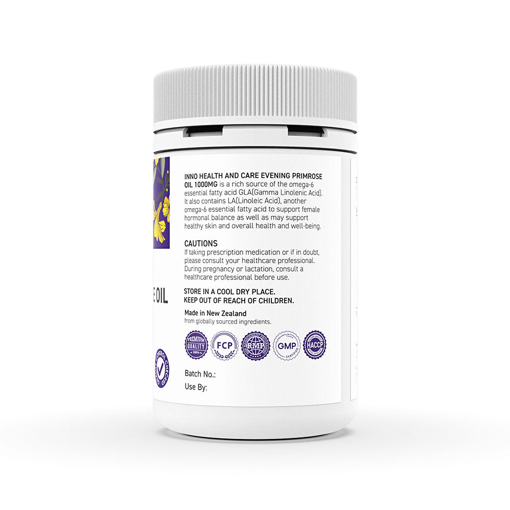 INNO Evening Primrose Oil 1000 is a premium omega-6 supplement formulated to support hormonal balance, skin health, and overall women’s wellbeing. Enriched with borage oil and essential vitamins, it provides balanced daily nutritional support.