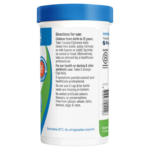 Inner Health Plus Baby & Kids Powder is a child-friendly probiotic powder formulated to help support healthy digestion, immune balance, and overall gut comfort in babies and young children. Featuring a blend of scientifically selected probiotic strains in a gentle powder format, this daily nutritional supplement helps promote a balanced gut microbiome and digestive wellbeing in developing tummies.