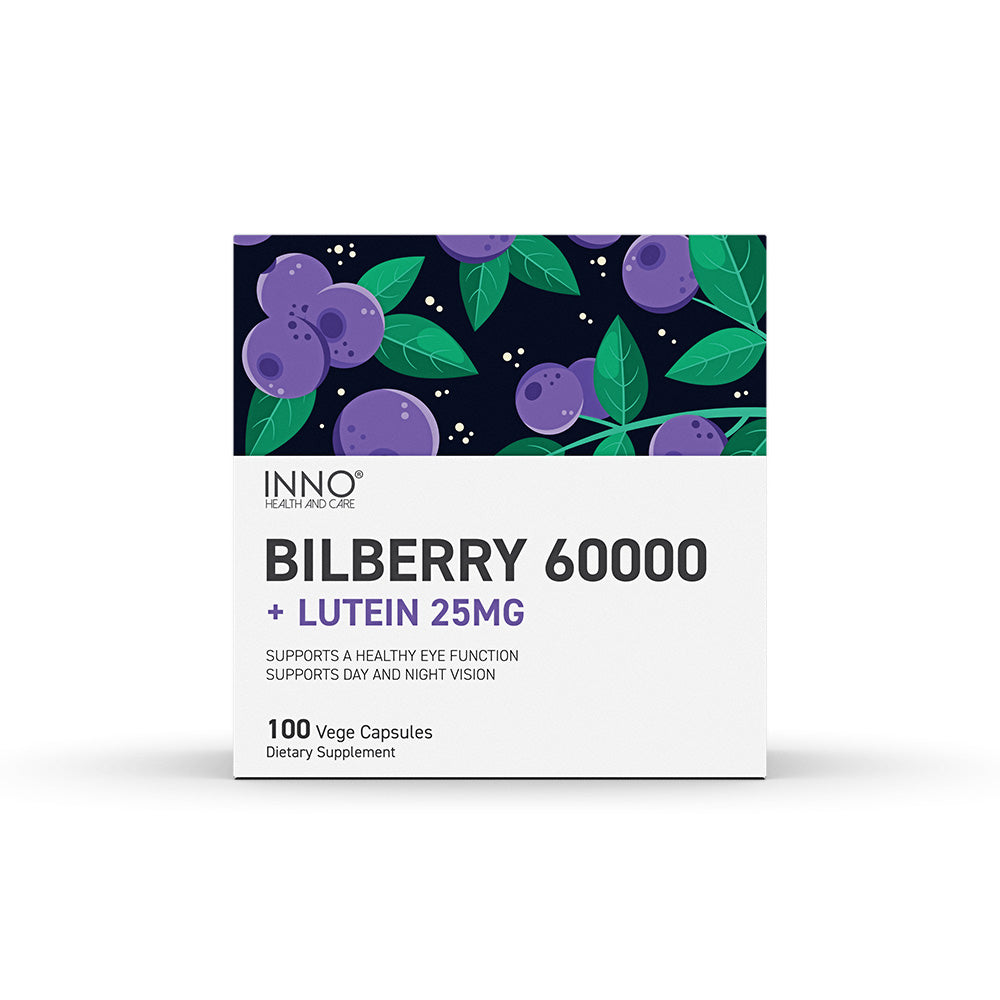 INNO Bilberry 60000 + Lutein 25mg is a high-strength eye health supplement formulated to support vision clarity, eye comfort, and long-term ocular health.