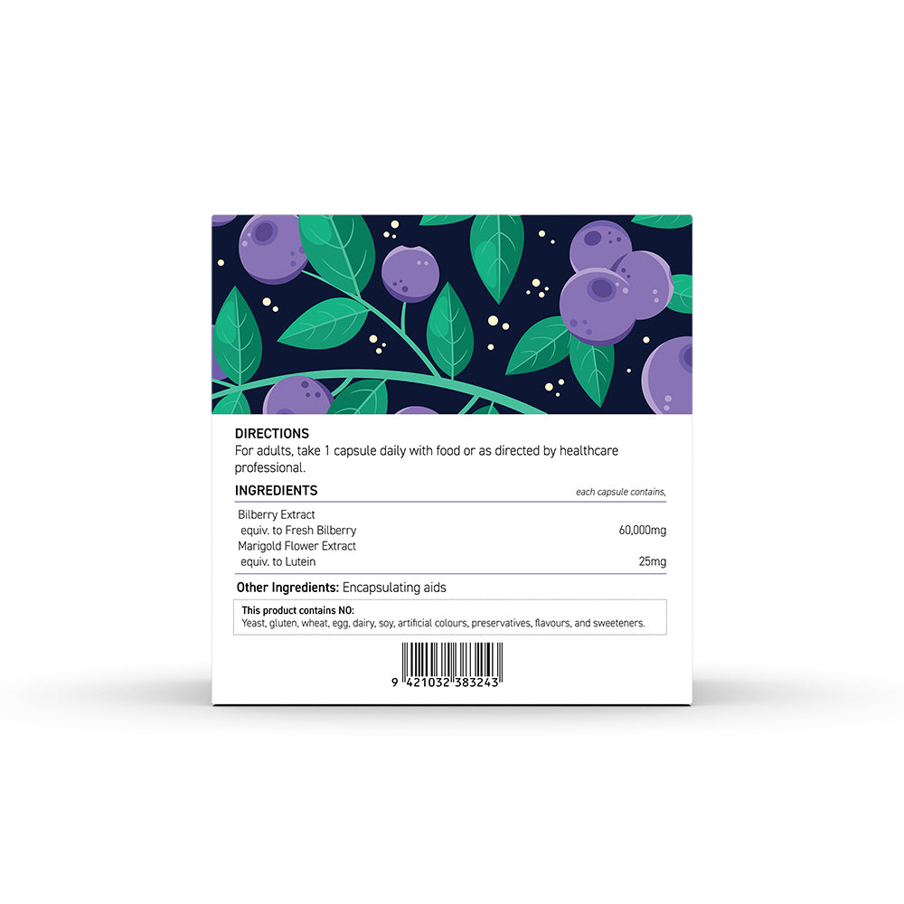 This premium formula combines concentrated bilberry extract, naturally rich in anthocyanins, with lutein—an essential carotenoid known to help protect the eyes from blue light and oxidative stress. Designed for modern lifestyles, it helps relieve eye fatigue associated with prolonged screen use while supporting healthy vision over time.